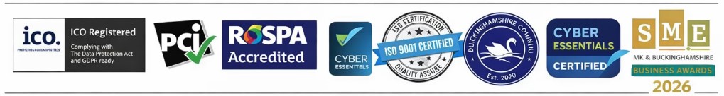 Fully Licensed Transport Provider | Cyber Essentials Certified | PCI Compliant Secure Payment Processing | GDPR Compliant Data Protection | ISO 9001 Certified Quality Management | Five Star Rated on Google